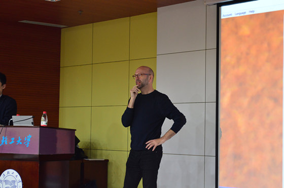 讲座伊始,Denisen教授便向在座的同学们提出问题:什么是美,美从何而来? 在引起大家思考之后,教授向大家阐述了情感设计理论,并将自己最喜爱的旅行箱放置在台上,以实物的方式来更直观地解释情感设计和实用性的关系。借助着华丽有质感的幻灯片,教授以三个茶壶说明了视觉设计,以酒店内咖啡机运行原理说明了行为设计,以竹制的音箱来阐释回想设计。并通过人类是怎样设计出山地车的视频,来强调发现美并实践美的重要性。Denisen教授还强调:“我们对于美的赞美是不需要教的,它是天性使然的。”讲解过程中,教授也时常用夸张的肢体动作,幽默的语言和观众们互动,同学们积极配合的热情更加高涨,场面十分热闹。讲座结束后,陈莹燕副经理代表公司对Denisen教授的精彩演讲作出了感谢。