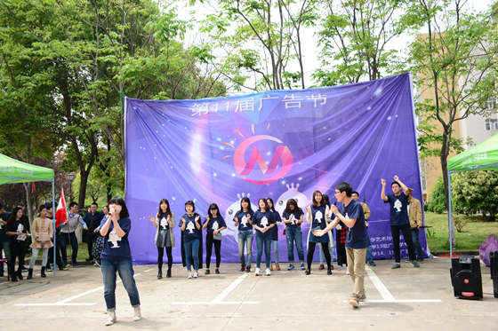 本报讯(实习记者 任玲 步昀倬)4月7日中午,艺传学院第十一届广告节在金湖食堂门口正式开幕。本届广告节由云顶国际yd333艺传学院主办,13级广告学专业承办,14、15级广告学专业协办,艺传学院经理陶丽萍老师、广告学专业教研室主任黄晓薇老师出席开幕式,全体广告学专业员工参加本次活动。活动现场气氛活跃,场上劲歌热舞,场下掌声不断、喝彩不止。