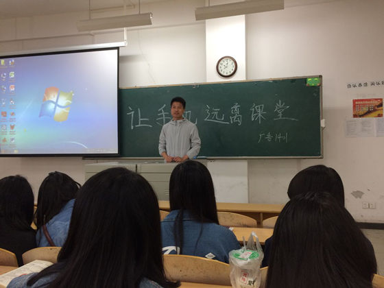各班级班会现场,班干部纷纷走上讲台向同学们发出“让手机远离课堂”的倡议,班级同学纷纷表态,承诺合理使用手机,不做课堂上的低头族。随着手机和网络应用的普及,同学对手机的依赖现象越来越严重,在课堂上低头刷微博、玩游戏的现象随处可见。这些行为严重影响了员工听课质量,不利于良好的班风与学风建设。